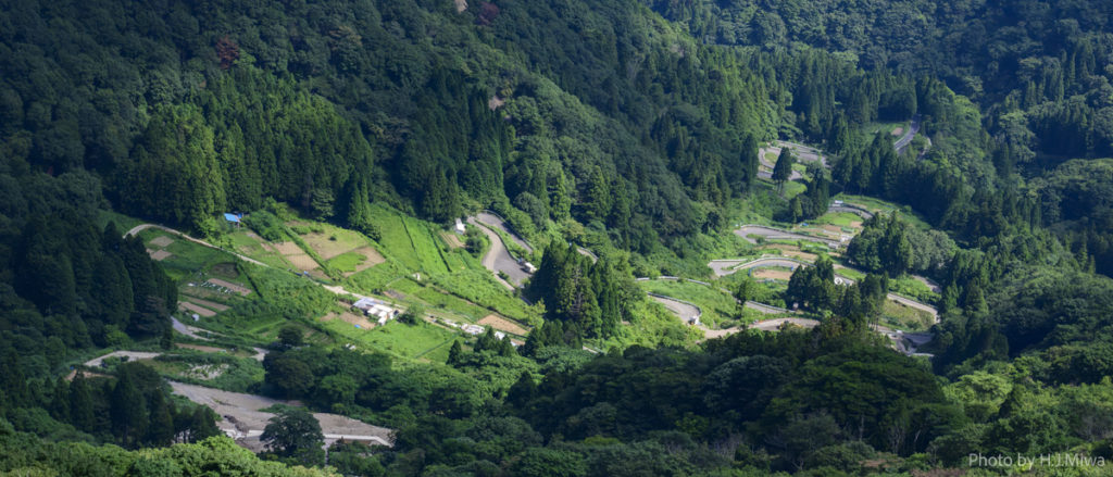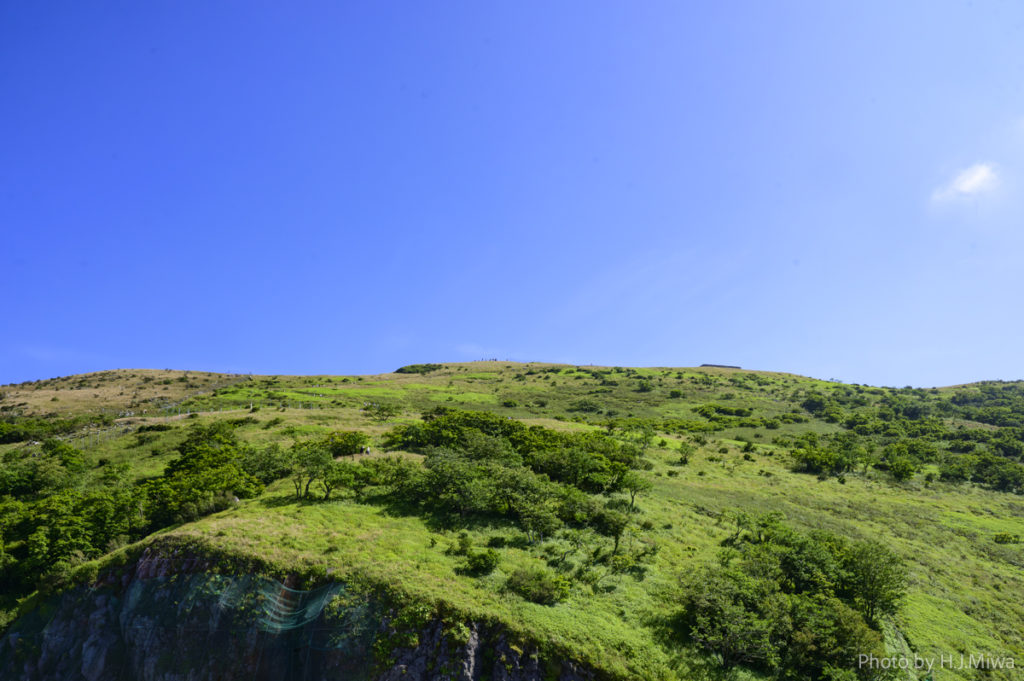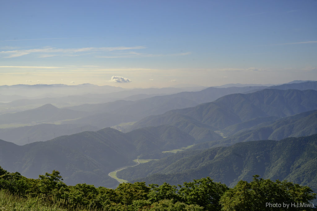 途中何箇所か展望エリアがあり、車で移動してはちょっと止めて撮影、を繰り返しました。山のいたるところに崩れている箇所が見られますが、これはニホンジカの食害によるものだそうです。増え過ぎたシカにより草木が食い荒らされ、山の斜面の保水力が低下し、最後には写真のように崩れてしまうのです。シカも自然の一員ではありますが、適正数を大きく超えてしまうとこのような事態に陥ります。こういった事態を含め、山の自然の維持管理にはお金がかかります。以上より、入山協力金300円/人への協力を推奨します。