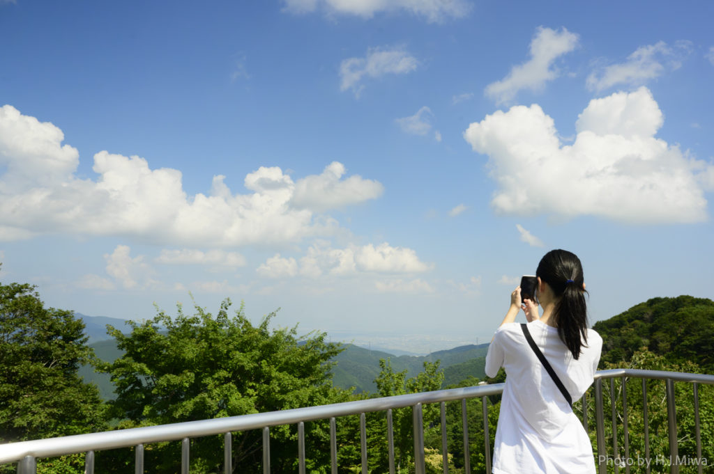 上平寺越駐車場からの眺めです。かすかに濃尾平野の景色を望むことができます。ウチのモデルさんも、絶景ドライブの途中でこの景色を堪能し、ごきげんの様子でした。