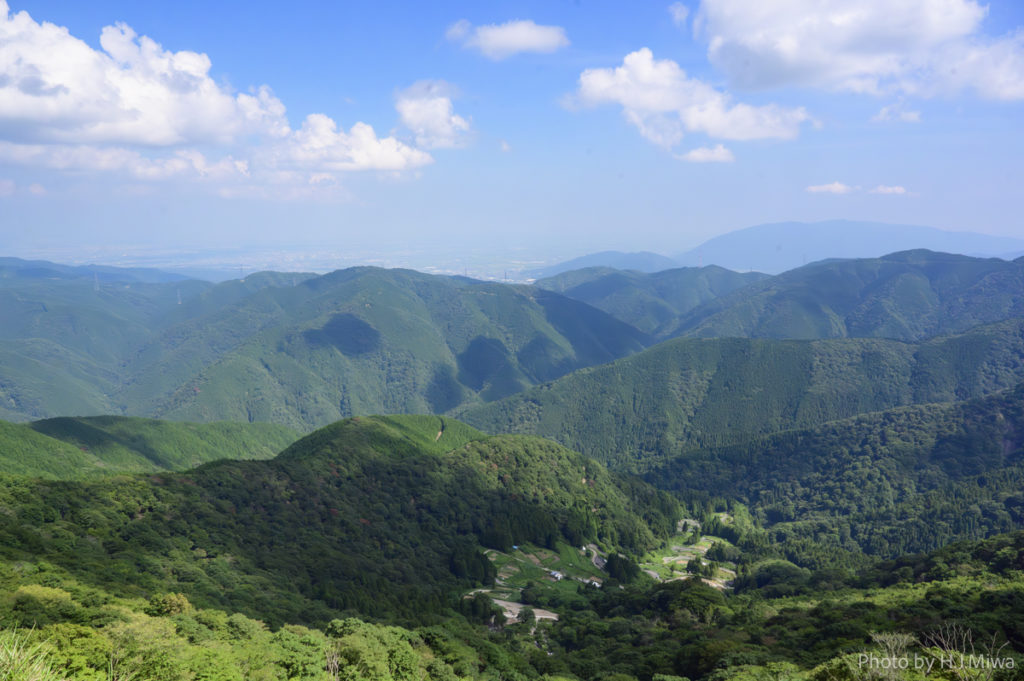 濃尾平野方面です。のどかな日本の原風景といった感じがします。下に小さな集落がありますね。