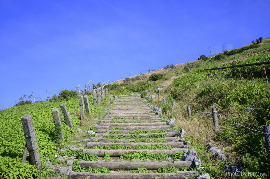 ・中央登山道コース:距離500m、約20分 階段上で急勾配