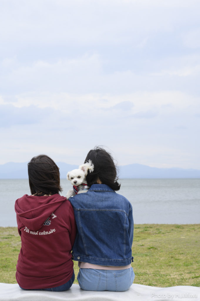 琵琶湖の湖畔で撮影しました。お出かけの際はいつも一緒です。