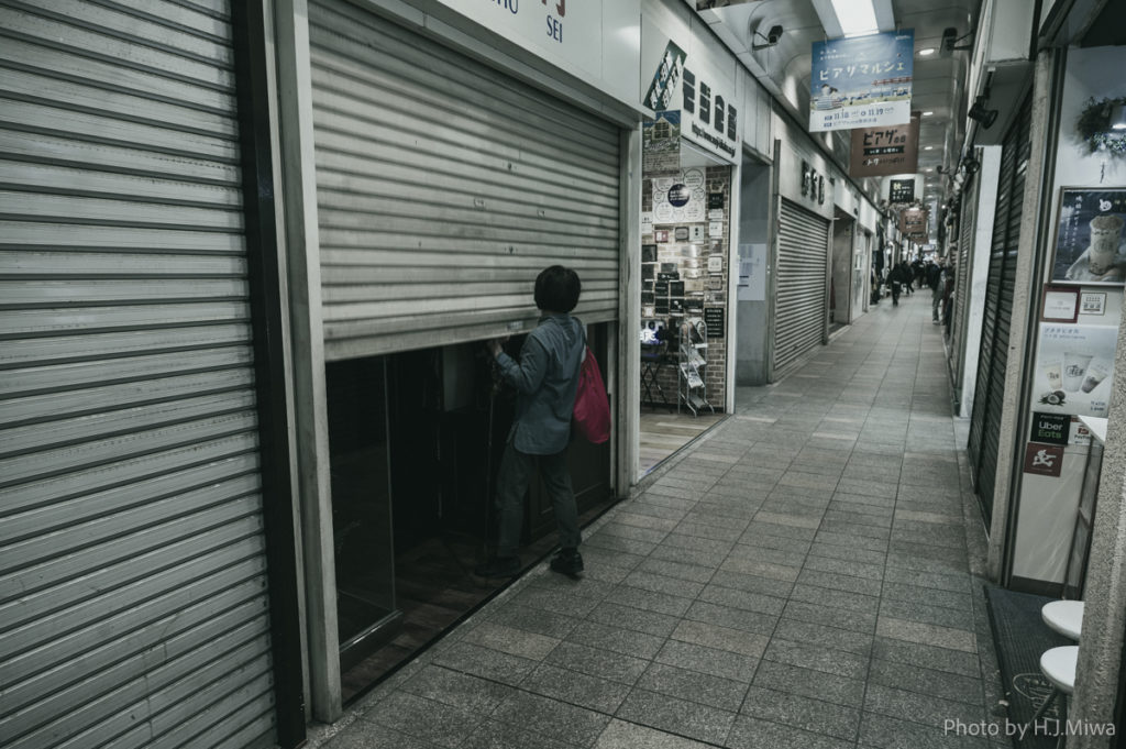 神戸元町の高架下商店街です。まだ朝早く、シャッターを開けられる店がちらほら出てきた頃でした。