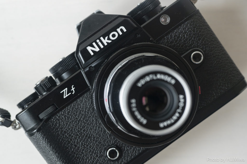私はこのZfを「小さなレンズで日常をスナップする」ことを前提に購入しました。基本的にマウントアダプターを使ってVMマウントレンズ(VoigtländerのライカMマウント用レンズ)を中心に使用します。ニコンの純正レンズはいずれも大きいので、Zfとのバランスがいいとは言えません。これらと組み合わせなくてはいけないような撮影では、深いグリップを有するZ6IIに任せます。Zfで純正レンズを使うとすれば、NIKKOR Z 26mm f/2.8くらいだと思います。