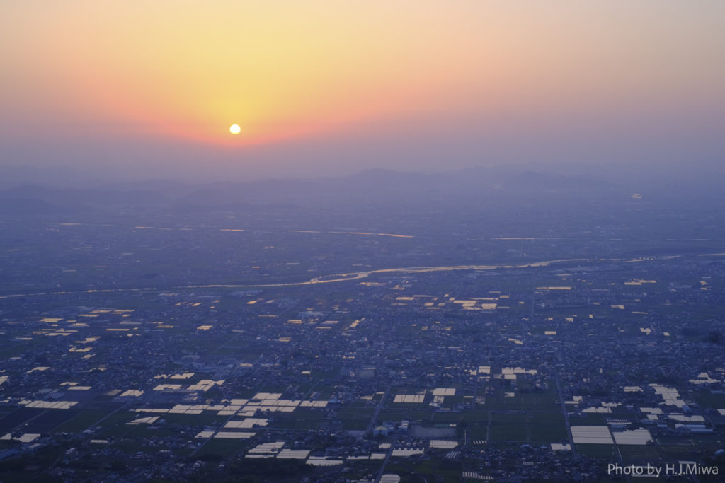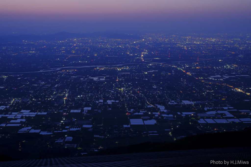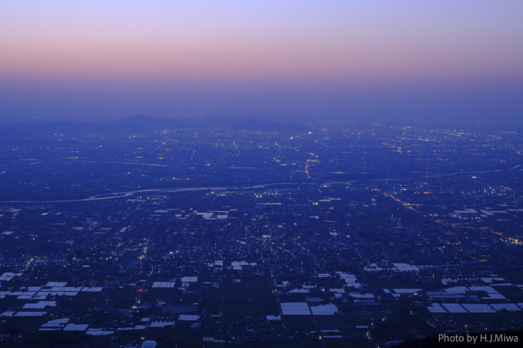 朝霧に煙る町並み、夕陽に染まる田畑の広がり、夜には星と街灯りが溶け合う絶景。