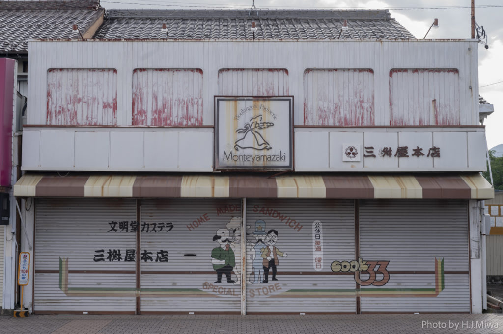 お菓子屋さんですね。日曜日の午後だからなのか、それとももう営業していないのか、シャッターが閉まっておりました。