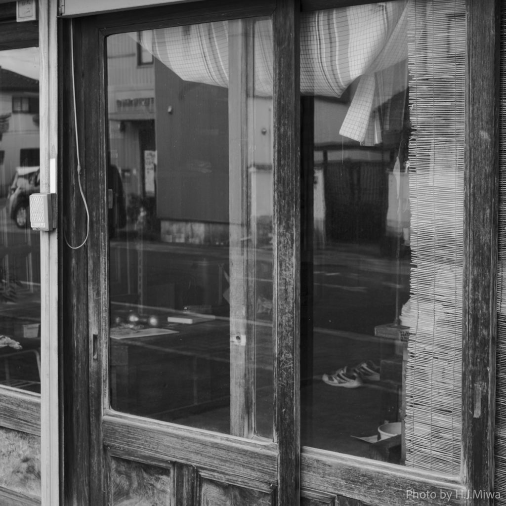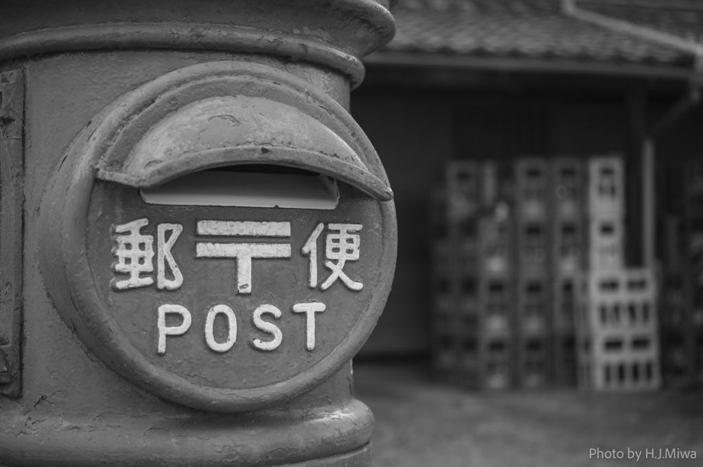 昔ながらの郵便局です。その後ろには赤と黄色の瓶ビールのケースたたくさん積み上げられていました。これらの色は、モノクロでも強く主張しているように感じるので不思議です。