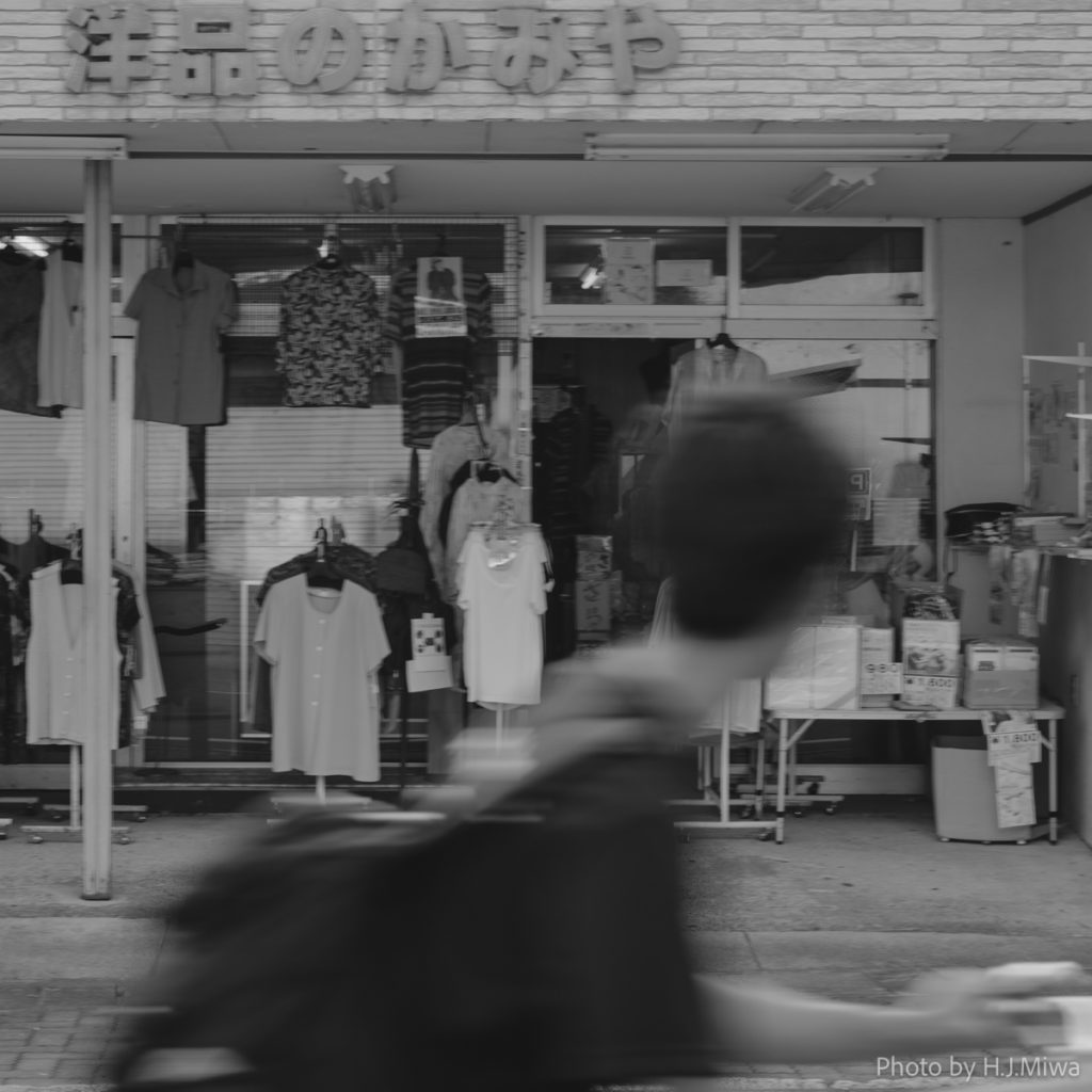 洋服屋さんです。私がカメラを構えていると、何か珍しいものでもあるのかと、不思議そうな表情を浮かべながら、少年が自転車で通り過ぎて行きました。
